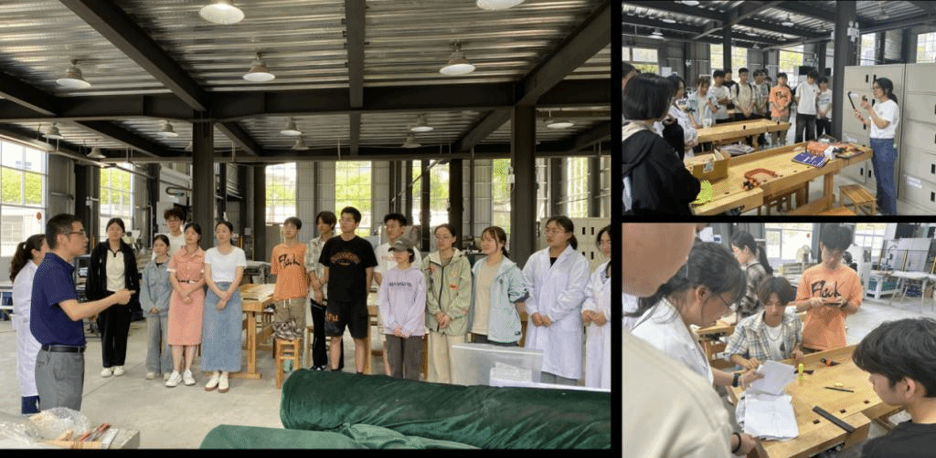 副院长张晓春和班主任张一和王慧老师的带领下,木材科学与工程231班和232班同学在国家工程中心中试车间开展了木美作品实践活动。木材专业蒋明月、党宝康和张健三位青年老师参与指导。